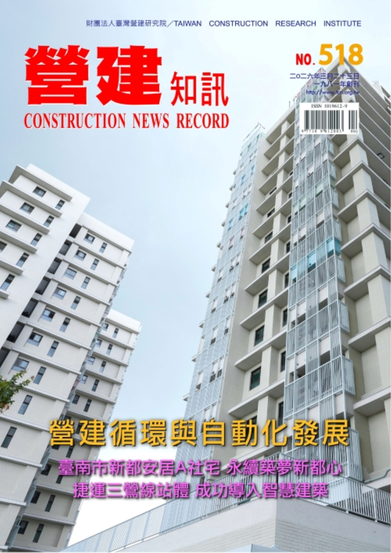 《每月專題/營建循環與自動化發展》報導營建院推動砂石粒料產品碳足跡驗證,從源頭掌握碳排放,並分享以精準拆除技術實現營建循環,以都會區都更案再生混凝土為例,建立營建循環市場價值評估模型,並報導台灣營建安全學會暨優質混凝土(GRMC)驗證參訪交流紀錄。