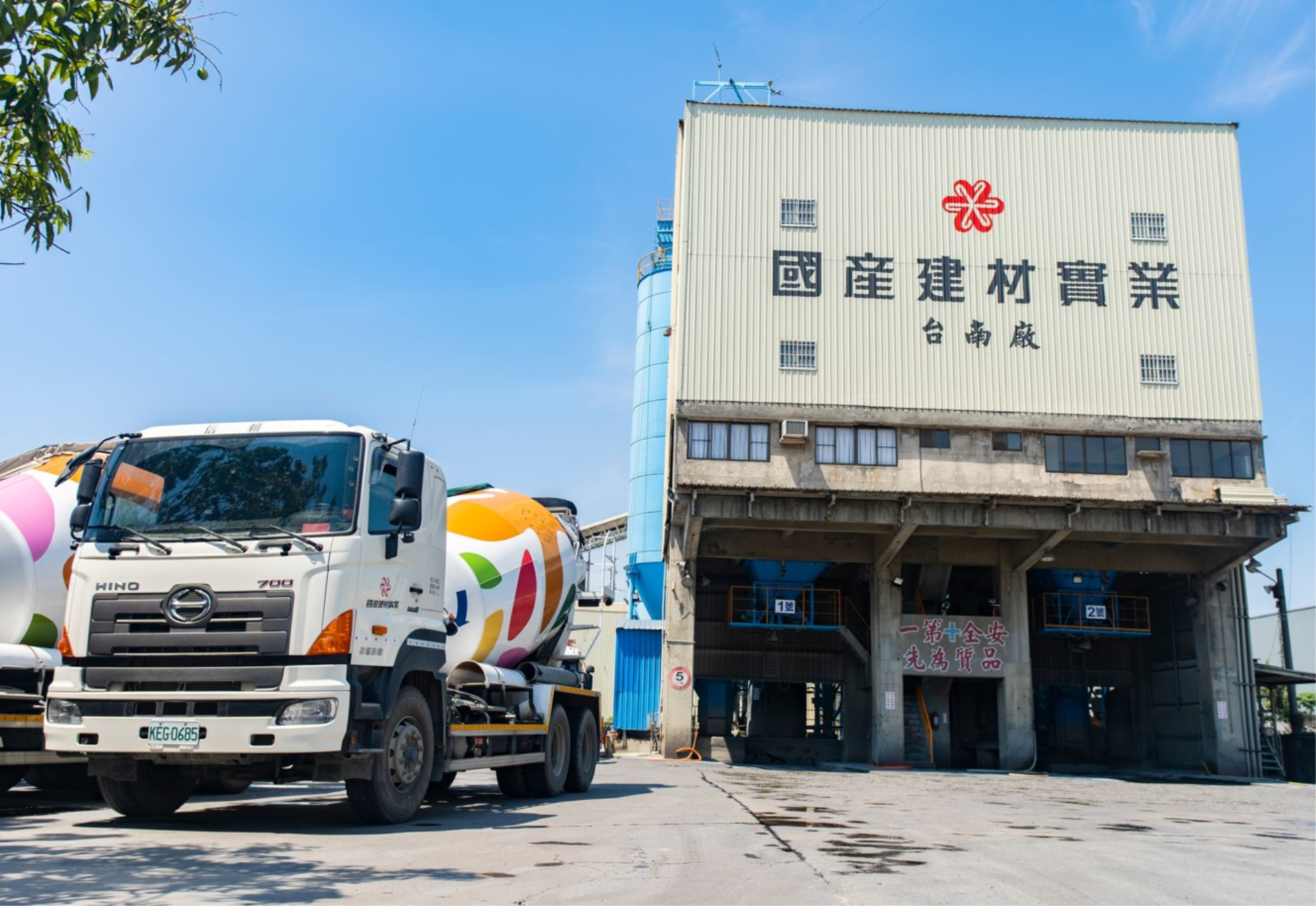 台南廠占地2,900多坪,擁有兩套3立方米拌和機,五座300噸的水泥、二型水泥、爐石、飛灰儲槽,往北可支援新市廠,供應南部科學工業園區、台南科技工業區、新吉工業區的廠房興建,往南則可支援大湖、岡山廠,供應台南鐵路地下化與興達港離岸風電等重大建設,與其他三廠串聯形成台南與北高雄的堅強戰線。在擇優出貨的策略下,市占超過三成,目前供應占比為廠房30%、公共建設10%、房建60%。